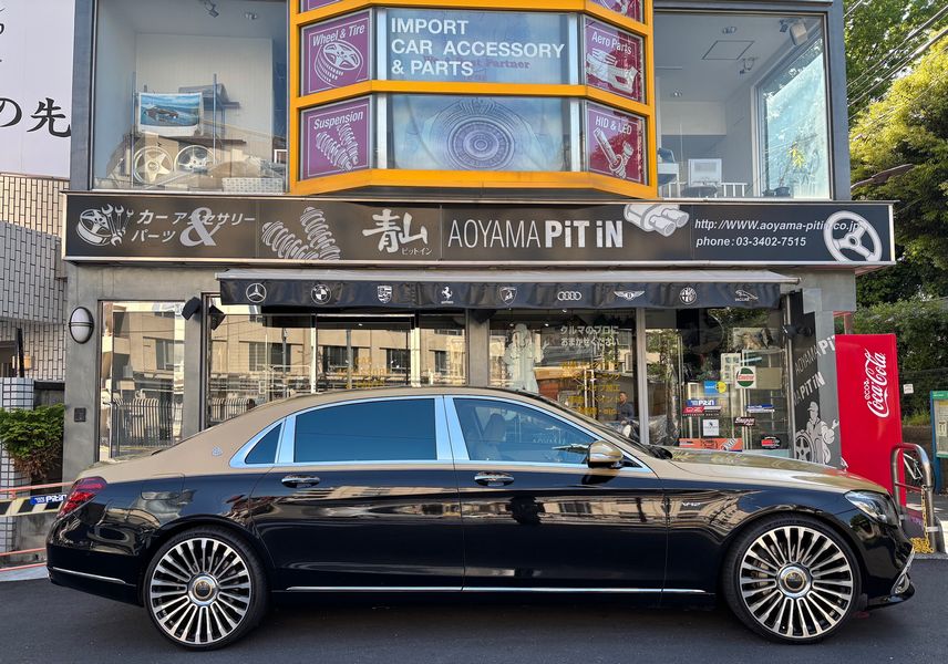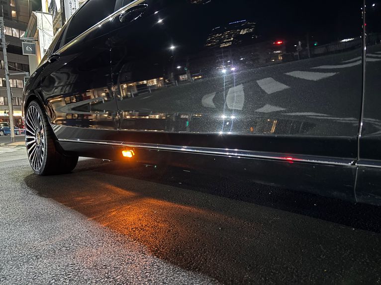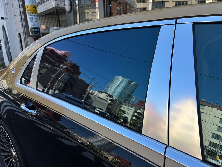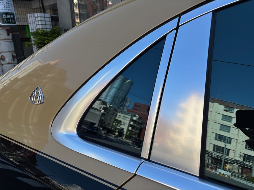 現行MAYBACHのようにコーチライン風サイドストライプもしっかり抜いて施工しております!